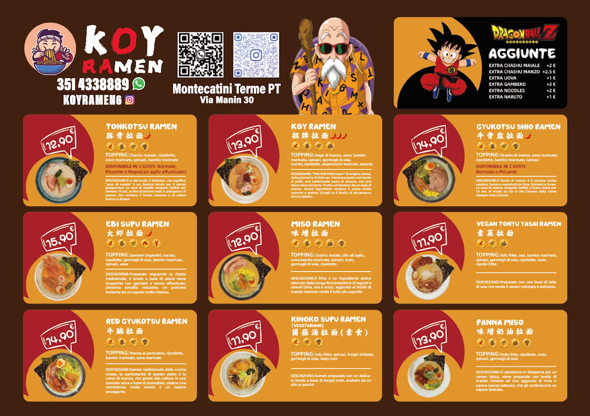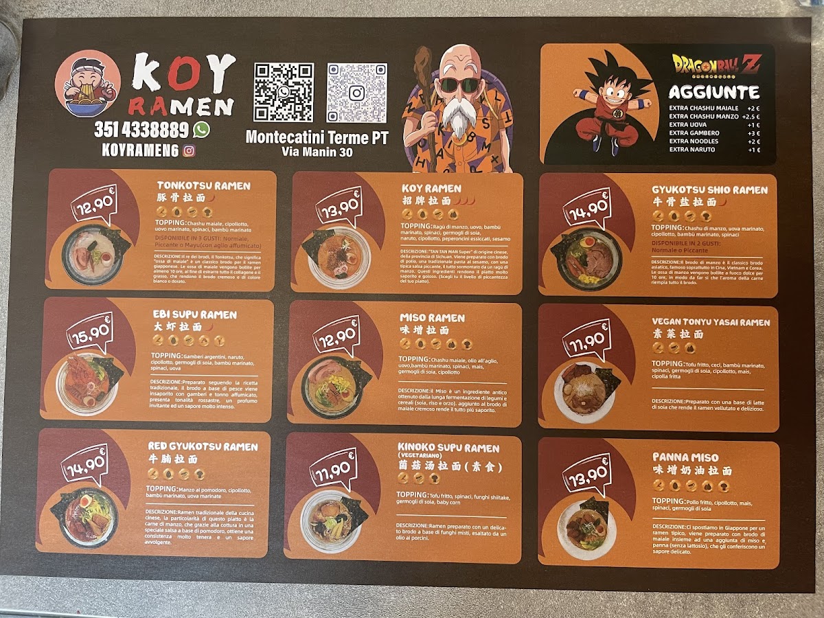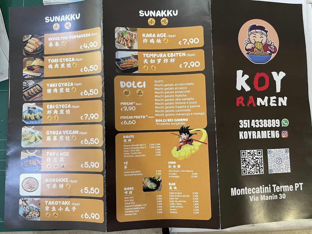 Overall, Koy Ramen presents a diverse and flavorful menu that caters to all tastes, from rich ramen bowls to lighter snacks and refreshing drinks. The combination of traditional and creative dishes makes it a must-visit for anyone in Montecatini-Terme.