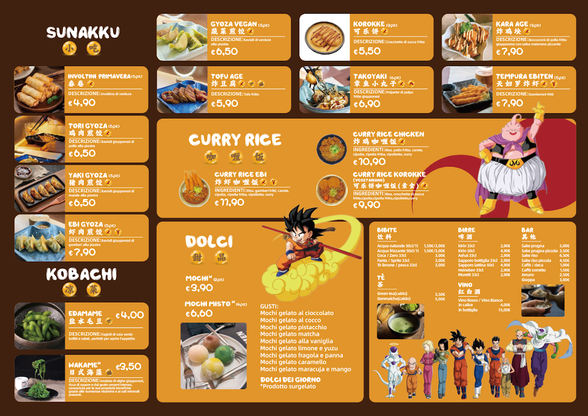 Finally, the Sunakku menu, including Palla Di Riso Glutinoso (sticky rice balls), Fry Bao, and Vege Bao, provides small but flavorful dishes for those who like variety in their meals.